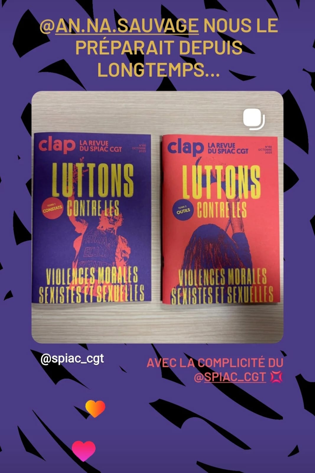 La toute nouvelle Ă©dition du magazine du SPIAC (le CLAP) comporte un article rĂ©digĂ© par notre Anna Sauvage â parmi de nombreux autres dans ce double numĂ©ro consacrĂ© Ă la lutte contre les violences morales sexistes et sexuelles (VMSS), venus dâautres collectifs et associations de mĂ©tiers (Femme Ă la CamĂ©ra, lâAFAR, Les Scriptes associĂ©es, la CCHSCT, âŠ), qu'on ne peut que trĂšs chaudement vous recommander !