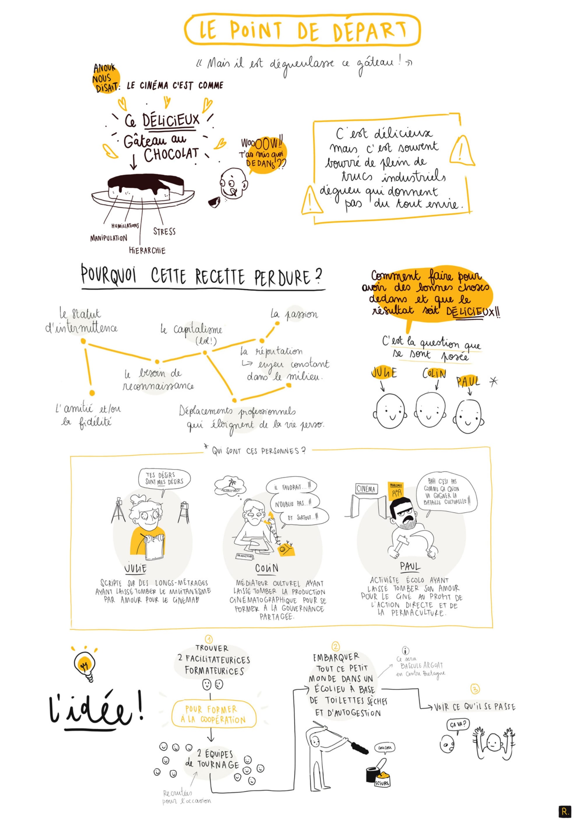 La résidence "On est raccord !" est un laboratoire d'expérimentation des outils de coopération dans l'écriture et sur les plateaux, ainsi qu'un lieu de création de récits engagés pour la justice sociale et bioclimatique.